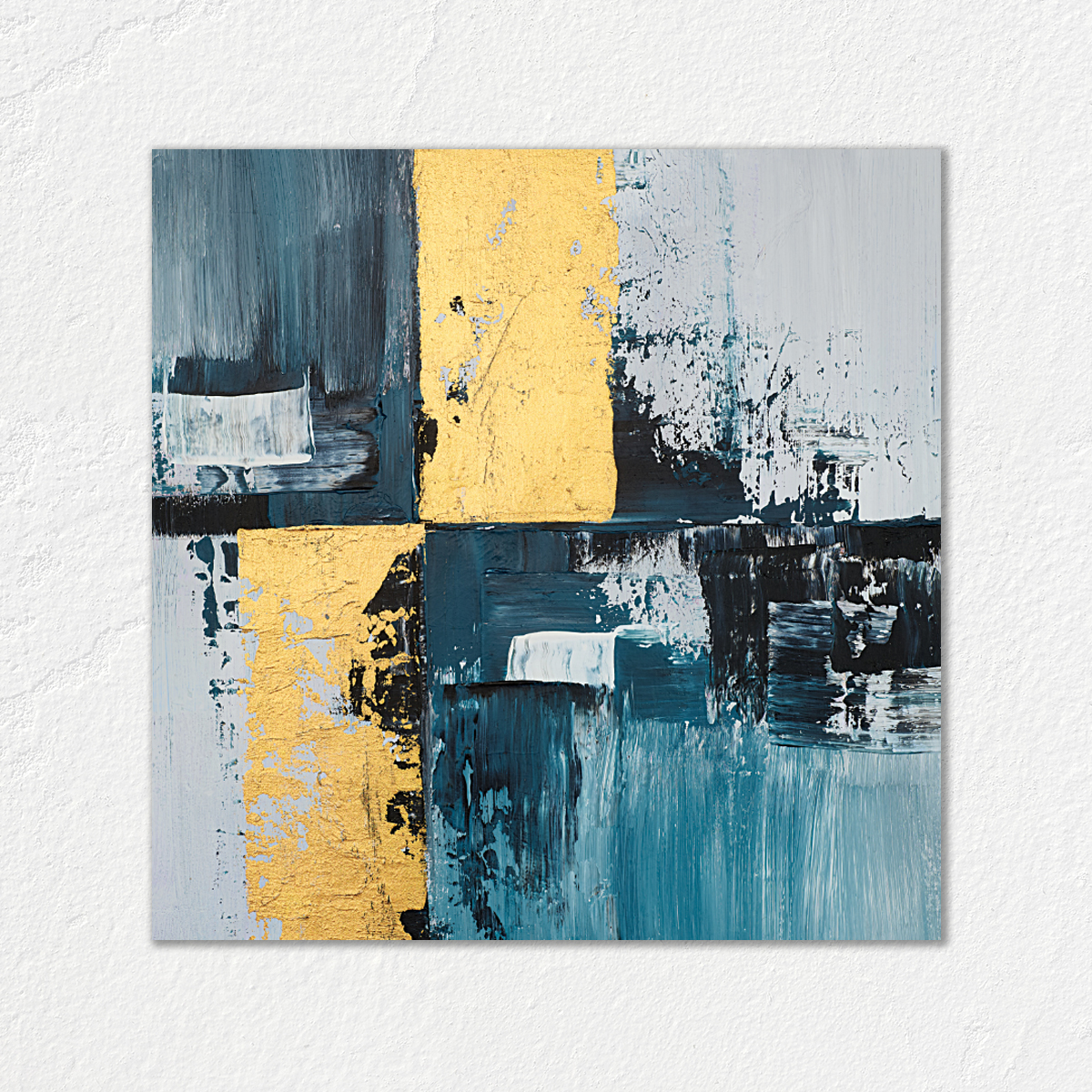 Slika na kanvas platnu Apstrakcija 76 je elegantna slika prepuna detalja i utiska zlatne boje na printu.